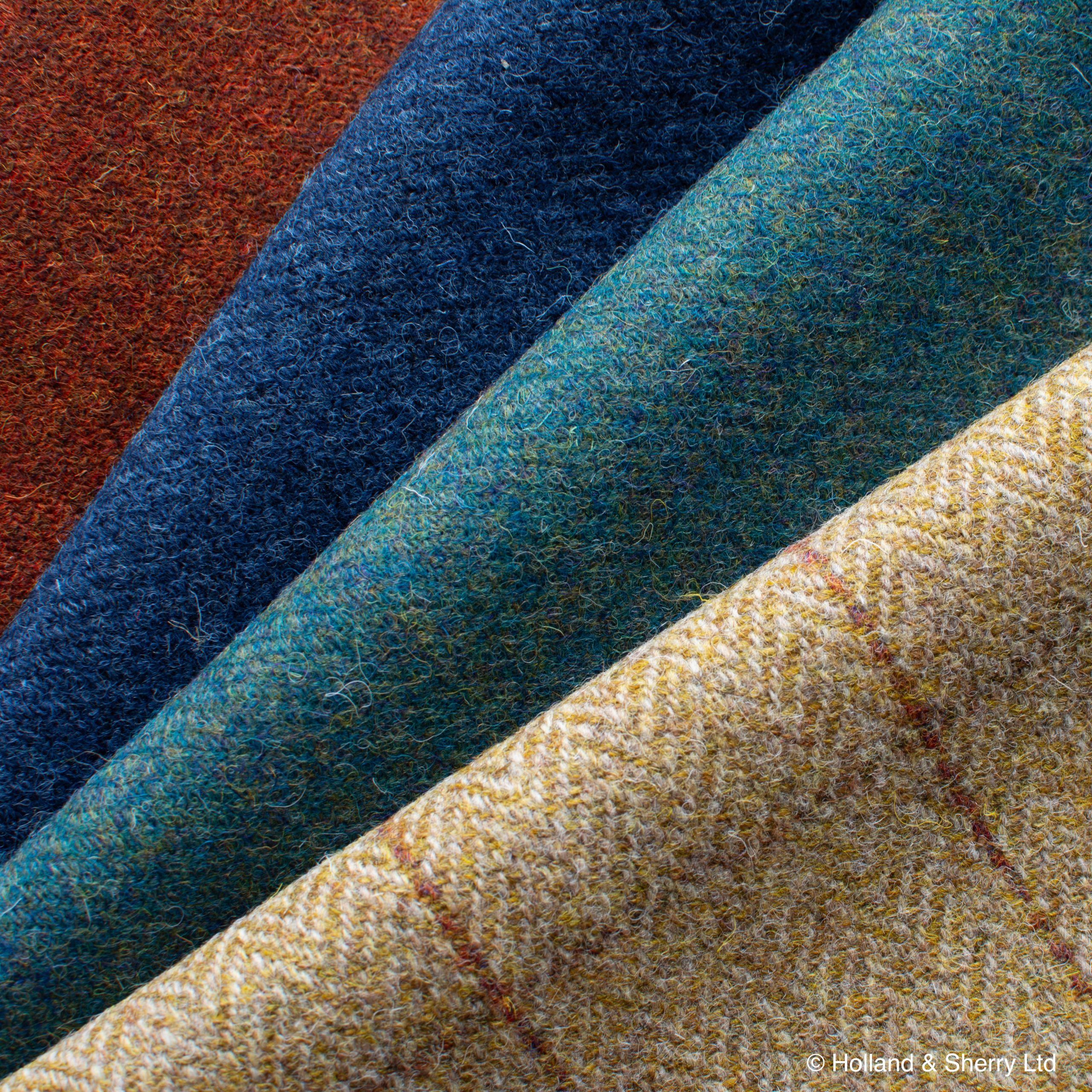 Holland & Sherry’s exquisite Harris Tweeds truly stand out. Made from high-quality wool sourced from the Outer Hebrides of Scotland and handwoven in the Western Isles, their commitment to heritage and authenticity puts their tweeds on top. The fabric stands the test of time and withstands the rigors of everyday life. Holland & Sherry features a striking blend of classic and vibrant colors in their houndstooth, plaid, and herringbone designs.This extensive collection of distinctive patterns allows every gentleman to effortlessly discover a style that resonates with his individual taste.